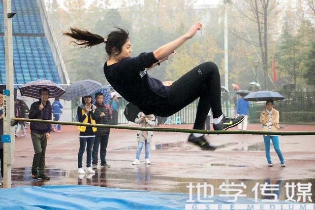 11月14日上午8点半,在运动会开幕式结束之后,学生甲组女子跳高决赛就在田径场北端跳高比赛场地紧锣密鼓地拉开了序幕,有来自峨眉校区的四名同学和来自交运学院、地环学院等六个学院共12名同学参加了此次比赛。