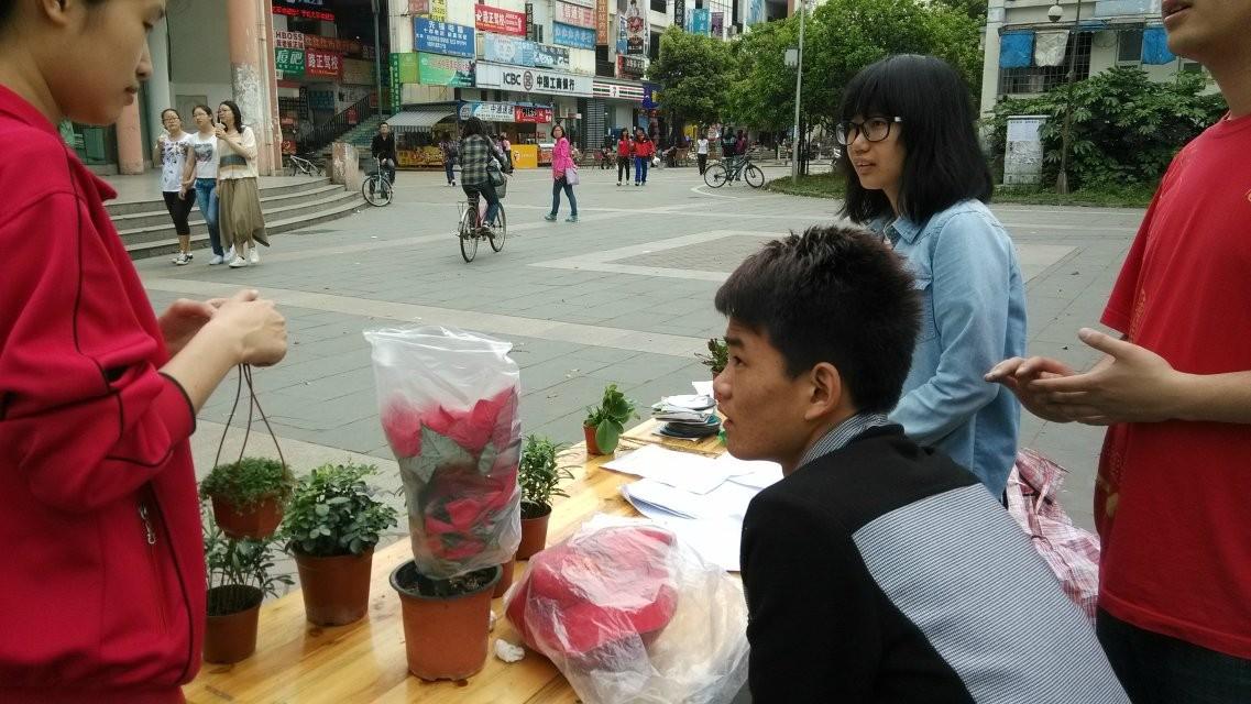 又是一年娉娉婷婷的春日,在这个莺飞草长,鸟语花香的季节,地学学院青年志愿者协会于4月19日、20日两天,在犀浦校区南区二食堂门口以及北区四食堂门口又一次开展了废品换鲜花活动。