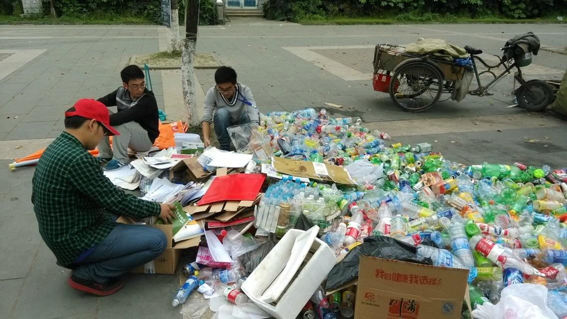 此次活动,地学青协还与物理青协取得合作,我们收集到的废品,为物理青协的变废为宝活动提供原材料,极大的增强了废品的再利用性,也增强了这两个学院志愿者之间的交流。