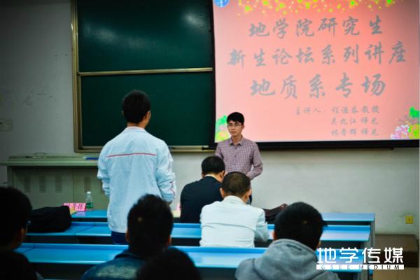 9月26日晚7点半,地球科学与环境工程学院研究生论谈系列讲座地质系专场在X2522教室如期举行,本次讲座的主讲老师为地质系博士生导师程谦恭教授,2011级博士研究生吴九江学长以及2011级研究生林晋辉学长也到场进行了交流。本讲座旨在于帮助2013级研究生新生了解就业去向、学习方法和论文撰写要点等方面的内容。