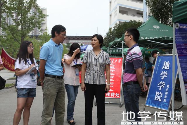 在所有地学学院所有迎新工作人员的热烈掌声中离开后,顾利亚书记又匆匆赶往下一个学院进行视察。