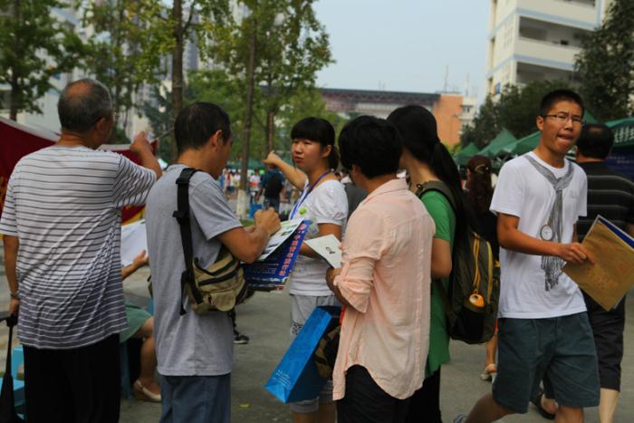 到达现场的有地学学院党委副书记傅尤刚老师、各级辅导员和众多学生干部。在准备妥当迎新点后,工作人员就开始等待本院新生的到来。在学院报到是新生入学的第一个步骤,迎新处的志愿者们不但保证了新生报到的效率,更想尽办法为新生及家长提供方便。如在办公桌前摆放了凳子,供新生与家长休息,并为其提供了纯净水,极大地缓解了他们的疲惫。自我管理中心的同学们有条不紊地帮新同学办理入学手续,填表格,发放材料,详细讲解新生报道程序。青协的同学负责带领新生去寝室,一路上为他们解答疑惑,舒缓了新生紧张不安的情绪。13级辅导员田凤晓老师告诉记者,今年地学迎新工作流程更加简单,极大的方便了新生的报到注册,保证了现场新生无滞留状态。此外,学院还为新生准备了相关资料、时间安排表等物品,以帮助同学们更好的融入大学生活。