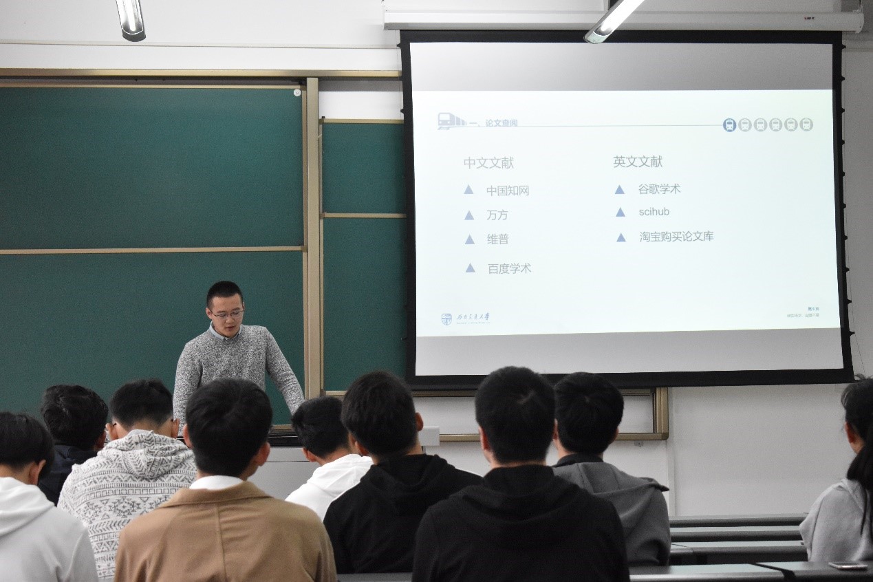 19级地质工程专硕2019-2020学年综合成绩第一、学业一等奖学金获得者。分享会上范祥泰同志分别从论文查阅、软件学习和如何利用研一三个方面做分享,他强调研一阶段课程较多,同学们应当在保证学习进度并学有余力的前提下,尽快进入导师课题组进行学习,能让自己在专业领域有所成长,并指出研究生阶段不同于本科生阶段,应尽快转变心态,将学习状态调整好。除此之外,范祥泰同志还强调了研一阶段阅读文献和软件学习的重要性,介绍了中文文献和英文文献查阅的方法,并指出各同学研究方向不同,学习和使用的学习软件也不同,应以问题为导向提高学习效率,利用好B站、慕课等网络资源学习Origin、Coredraw等绘图软件,多向师兄师姐请教。