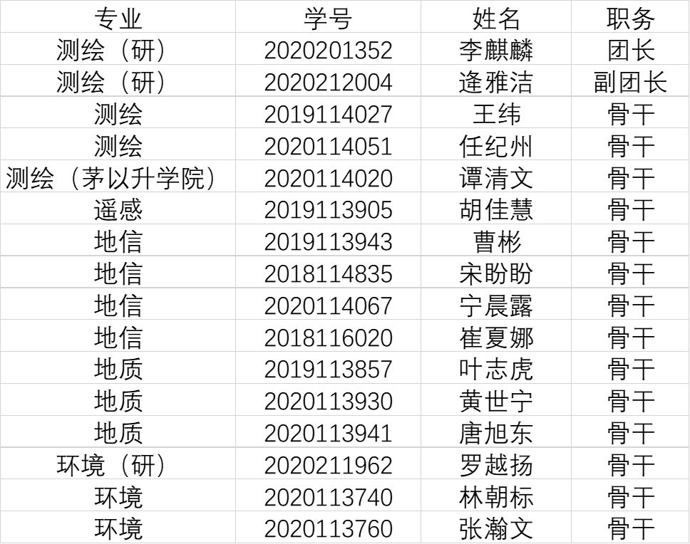 根据地学学院日前发布的关于《地学学院团委关于组建2022-2023年度“青年讲师团”的通知》的相关通知,经由学院学生申请、组织推荐、辅导员老师审核推荐、学院团委最终审核,按照申请人数与录用人数3:1比例进行择优聘任。现将名单公示如下: