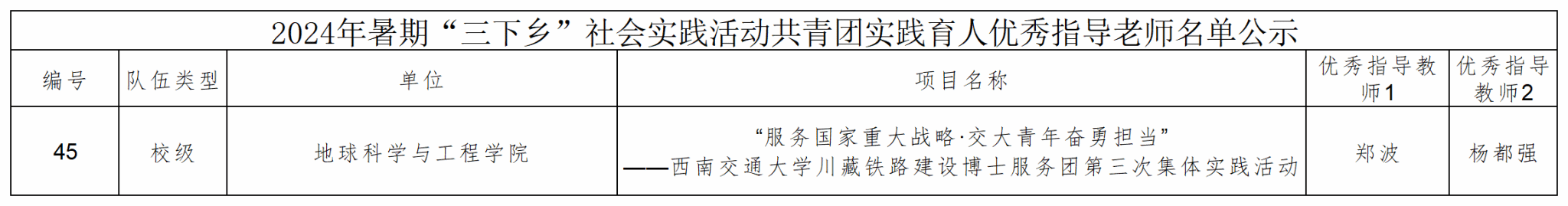 图3 2024年暑期“三下乡”社会实践活动共青团实践育人优秀指导老师公示