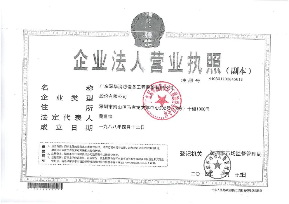 广东深华消防设备工程股份有限公司,成立于1988年,于2015年9月在新三板成功挂牌上市(股票代码833547)。是一家以消防工程、机电工程、智能化工程、空调安装工程等工程施工为主业的,集消防设计、消防维保、消防培训、消防咨询、消防信息化管理、建筑智能化维保服务为一体的综合服务商,是行业内专业化程度最高、资质种类最全的消防工程企业之一。企业情况,请登录