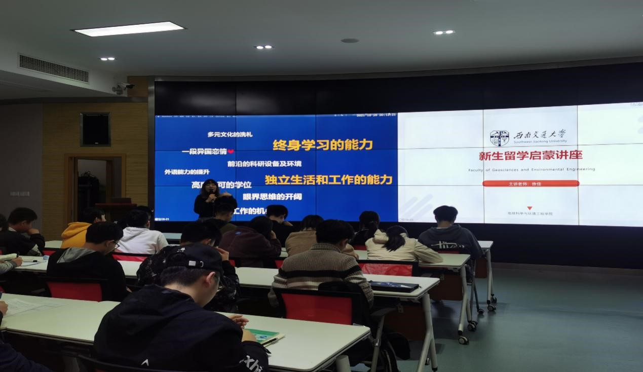 2021年10月28日晚17:30,地学学院“留海说”新生启蒙讲座于犀浦校区四号教学楼X4243教室圆满完成。活动由地学学院就业指导中心主办,此次活动旨在为有留学意愿和需求的本科生提供交流的平台,分享留学的知识和经验。本次讲座诚邀雅思官方课程认证讲师,毕业于英国巴斯大学TESOL专业,获得剑桥大学英语教学能力证书的徐佳老师,讲座主题为“飞跃重洋,人生一次有益的尝试”。