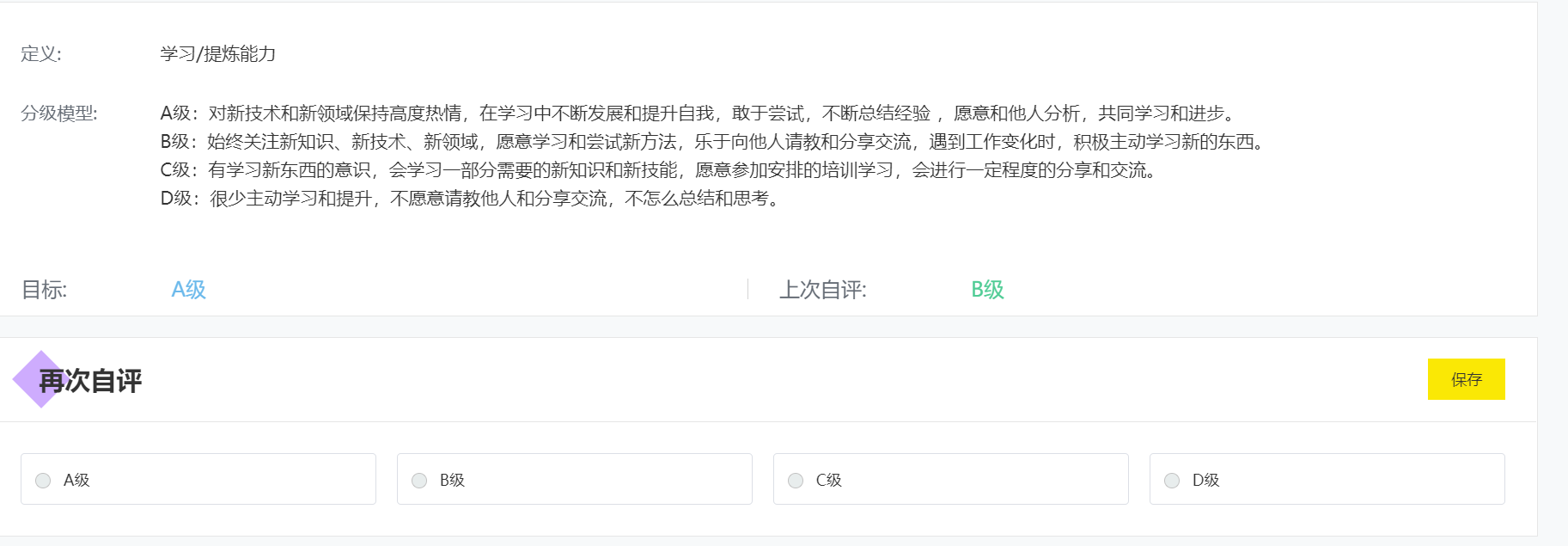 在进行能力训练前,根据自己的实际情况进行测评:
