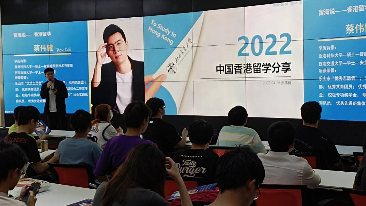2022年4月26日,星期二下午16时,由地学学院就业指导中心主办的“留海说”系列讲座第二期于4243顺利举办,此次活动旨在为有相关留学意愿和需求的本科生提供与有经验的优秀前辈交流的平台,帮助同学们了解留学的相关细节和注意点。本次活动特邀请到现就读于香港科技大学的蔡伟健学长为同学们分享自己的报考经验以及留学经历。