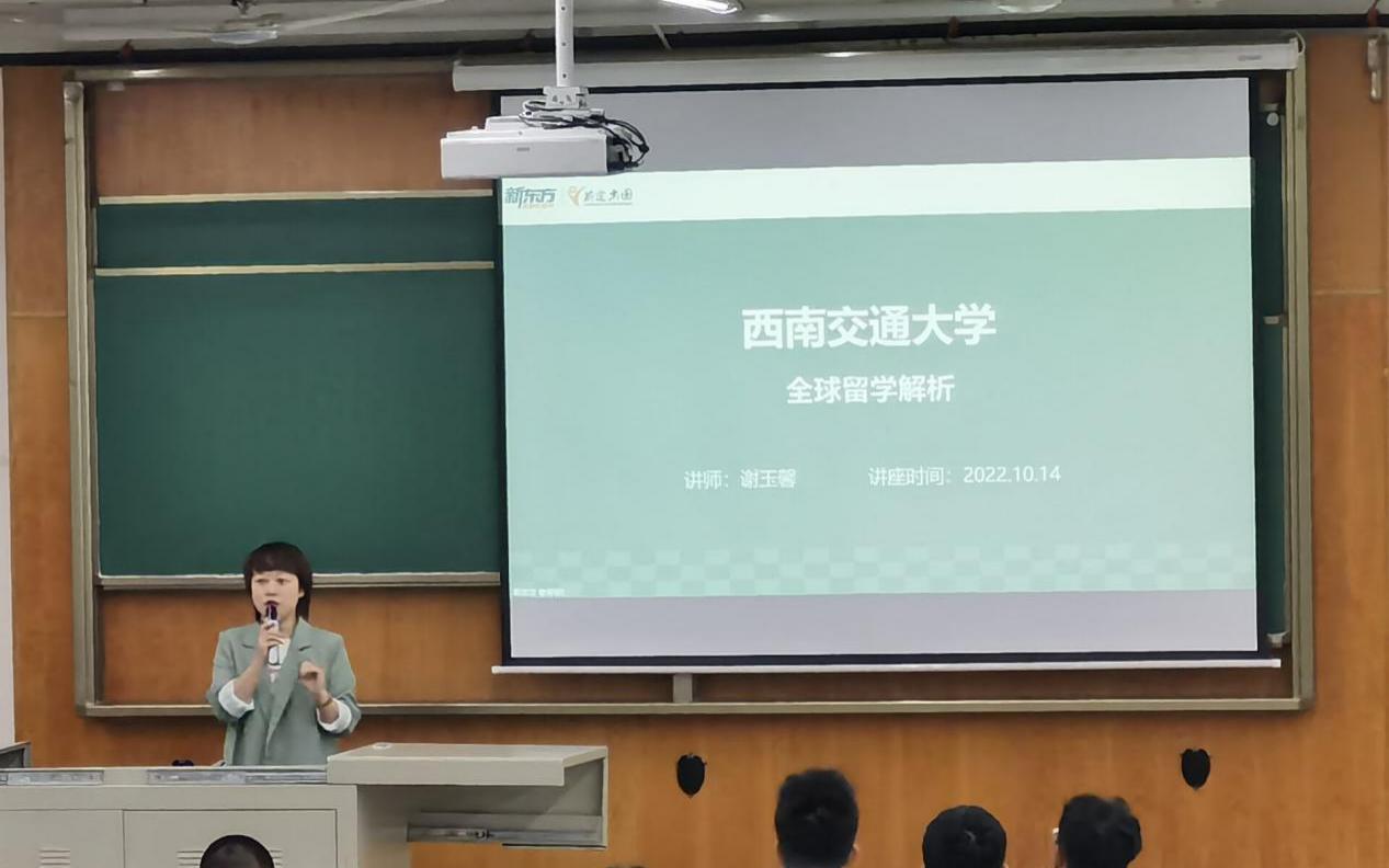 2022年10月14日晚19:30,地学学院“全球留学解析”讲座于X4359顺利举办。活动由地学学院就业指导中心主办,本次讲座由被誉为“校园国际化教育讲师”和“学生公益留学规划指导师”的新东方讲师谢玉馨主讲,旨在为同学们解答有关全球留学前期准备及留学流程问题。