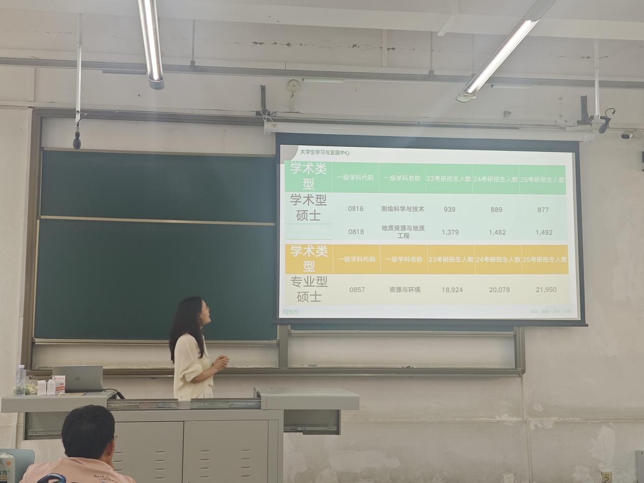 本次讲座精准对接地学学院学子考研需求,聚焦四大核心内容展开分享:一是梳理考研基础知识,搭建系统备考框架,为零基础或基础薄弱的学子筑牢根基;二是深入分析地学学院各专业考研当前形势,结合近年招录数据拆解竞争态势与发展趋势;三是针对性讲解目标院校与专业的选择方法,从自身实力匹配、院校性价比、专业发展前景等维度给出实用建议;四是提供现阶段考研复习规划指导,结合备考黄金周期,为学子制定科学合理的阶段性目标与学习方案。