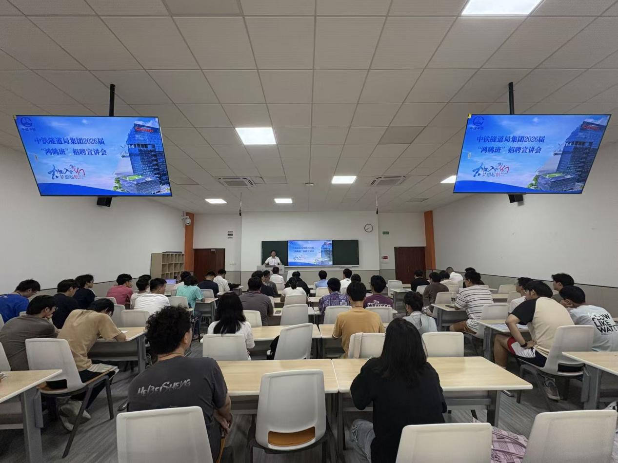 为深化校企合作,搭建人才供需对接桥梁,助力2026届毕业生精准择业、高质量就业,6月5日下午,中铁隧道局集团2026届“鸿鹄班”专场招聘宣讲会在X4243教室成功举办。中铁隧道局集团人力资源部相关负责人莅临宣讲,学校2026届各相关专业本科生、研究生齐聚现场,共寻职业发展新机遇。
