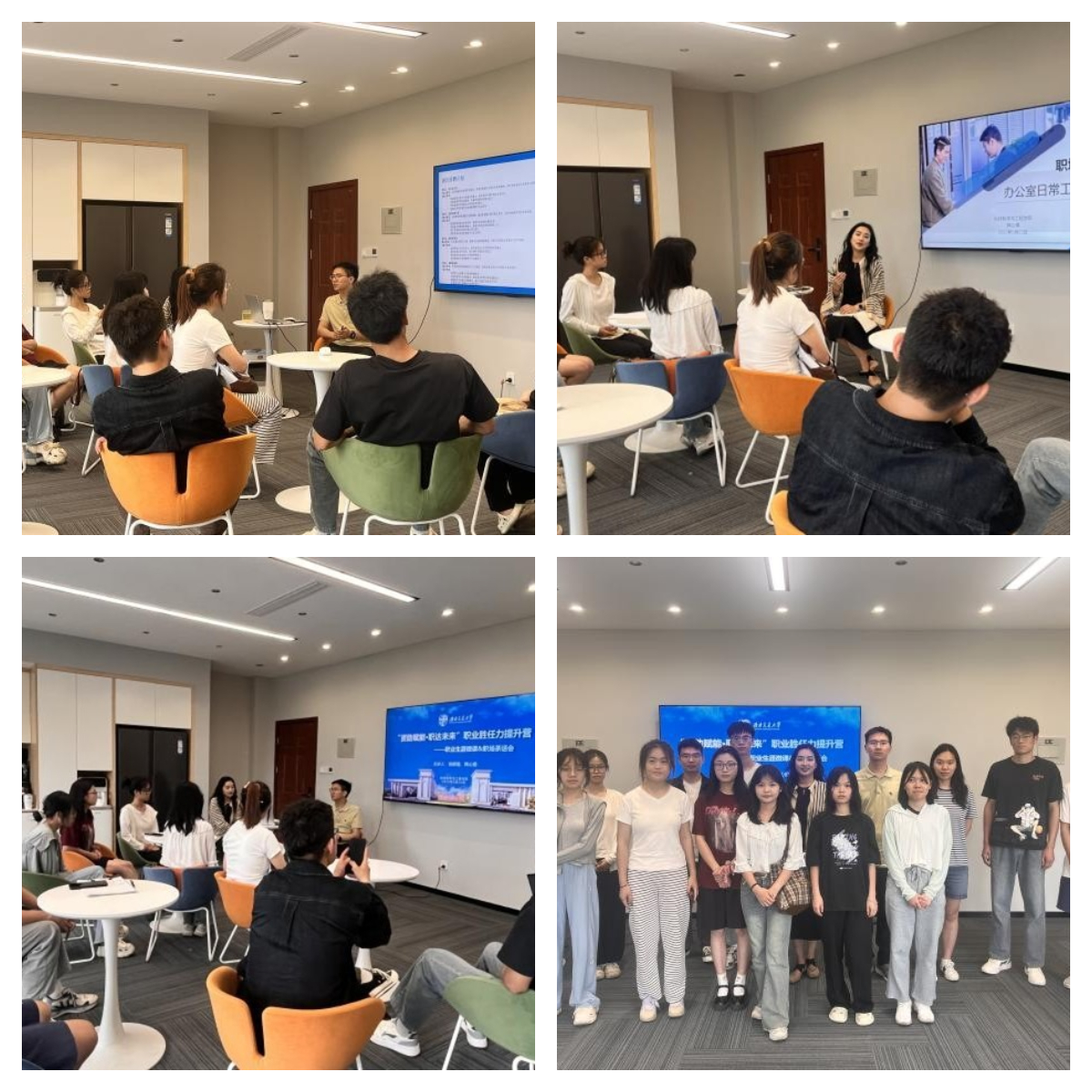 围绕“职场通用技能训练”“职业素养提升”两大模块,提升营邀请专业师资开展精准化培训。高级生涯导师杨都强老师主讲简历制作,通过案例拆解与实操指导,助力营员掌握求职文书的排版规范与优势呈现技巧;韩沁儒老师系统讲解职场礼仪与办公规范,帮助营员建立职业认知;两位老师共同主持职场茶话会,深度解答职业选择、职场适应等困惑,强化营员心理适应力。