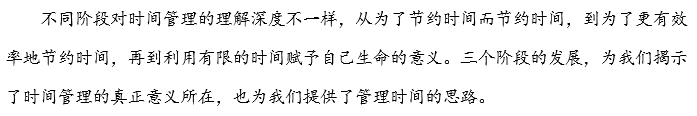 第三阶段,坚持和贯彻时间管理的理念以构建个人生活的意义。生活其实本来没有意义,这样才能让每一个人自己去赋予它意义,把时间管理的理念贯彻到树立积极的三观以及形成良好的生活习惯中,去融会贯通各类时间管理工具,然后持续的思考并践行之,由此去构建个人的生命价值和意义。