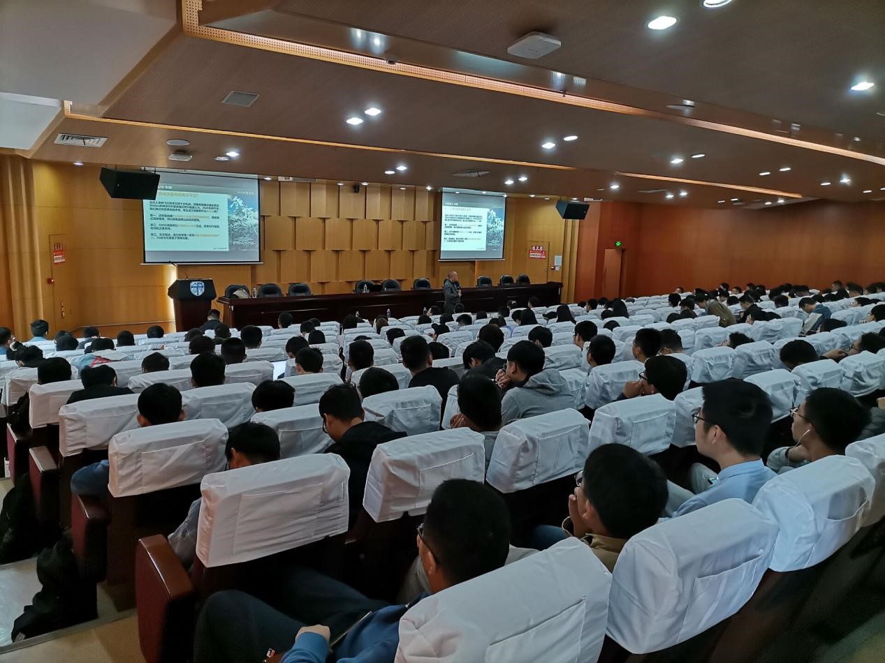 随后,由胡炜副总裁做讲座报告。报告中,胡炜副总裁就从为什么登顶珠峰、登顶珠峰并完成测量难度多大、登顶珠峰的测量设备条件如何、珠峰高度测量完成后带来怎样的影响等问题向同学们讲解。