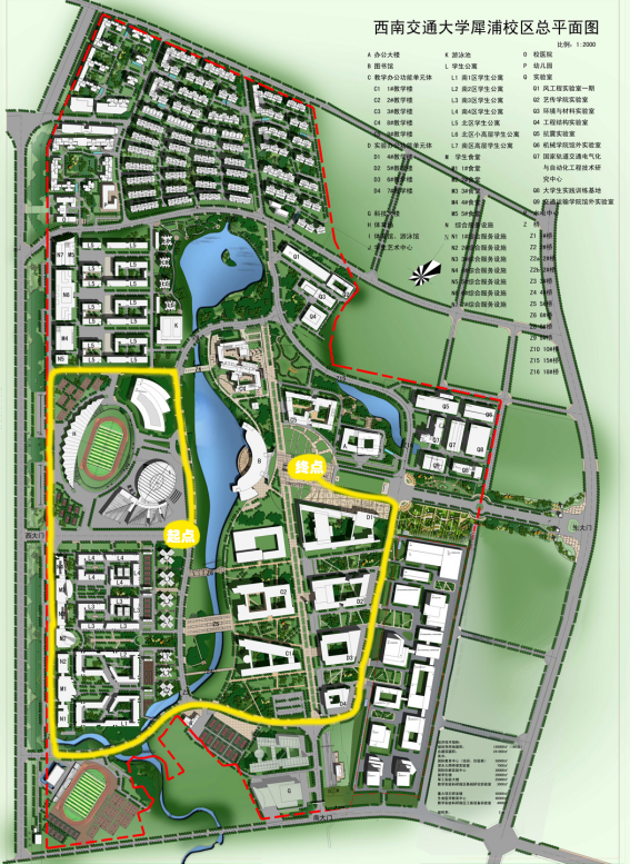 活动路线:体育馆堂吉诃德站→北区校车站→西门→南区体育场→机车博物馆→国旗台→图书馆(3.6km)