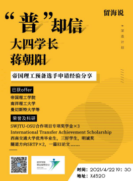 讲座主题:“普却信”大四学长|帝国理工预备选手申请经验分享