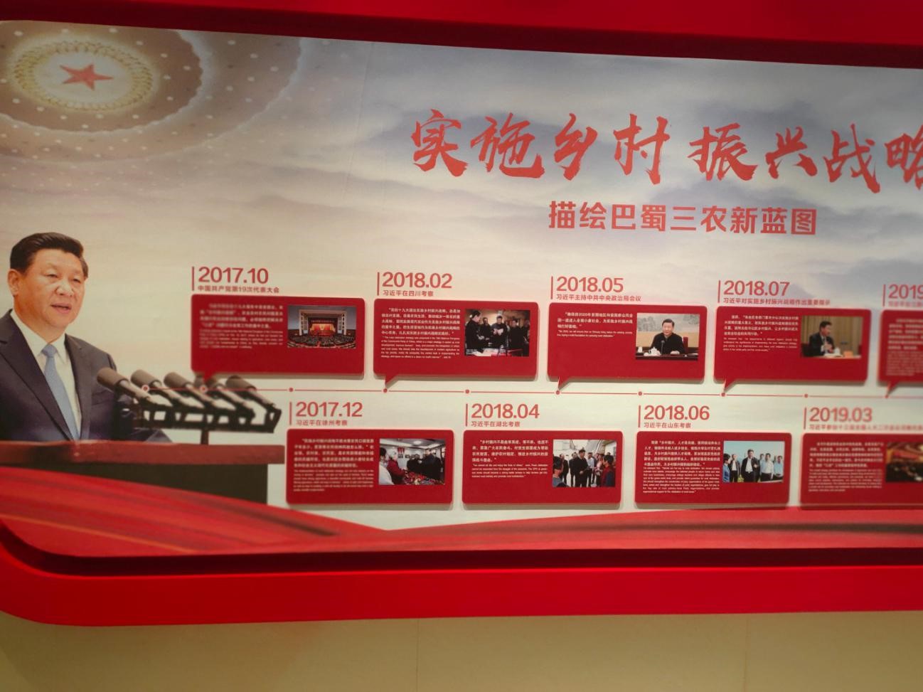 博物馆的顶层展厅,记录了四川省振兴乡村七十年来的辉煌历程和主要事迹,从毛泽东主席视察红光社到现在的实施乡村振兴战略,让成员们领会了建国以来党与国家在振兴乡村建设上做的伟大努力和取得的宏伟成就。