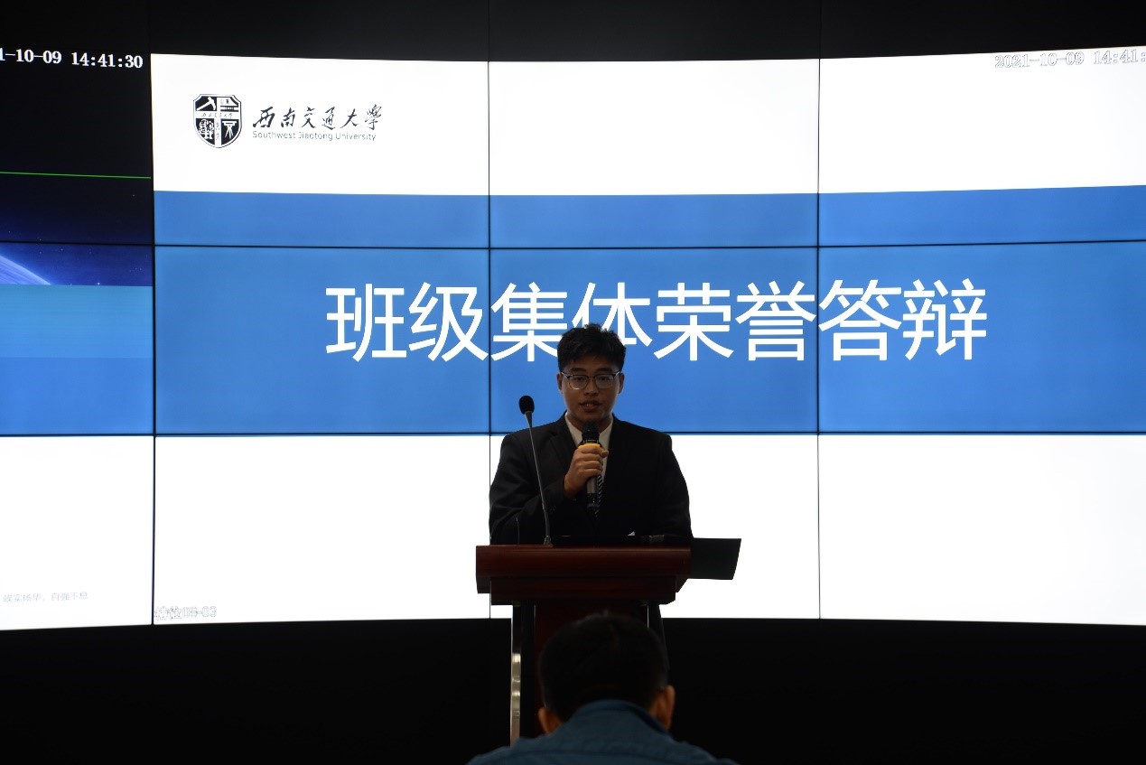 2018级遥感二班的学生代表谷恒超的答辩尤其令人影响深刻,他分别从“竢-厚积”“ 实-薄发”“ 扬-风采”“ 华-未来”四个方面详细阐述了本班级取得的成绩。除此之外,其他班级同学代表的答辩也十分精彩,他们毫无保留地向大家展示了班级荣誉奖项、学风建设情况、科创项目数量等各方面的荣誉,他们优异的表现得到了现场观众们热烈的掌声。