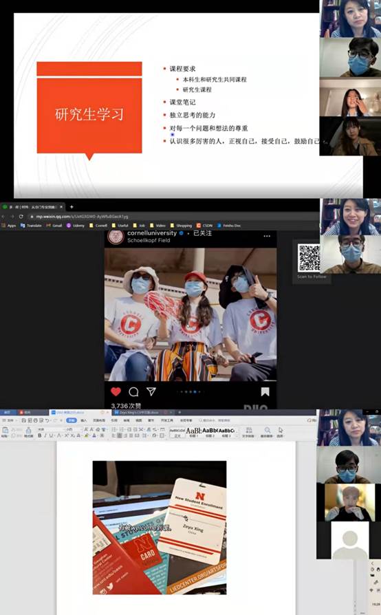 安全工程专业2017级毕业生何玮(现就读于康奈尔大学)、张梓琳(现就读于马里兰大学),西北农林科技大学食品科学与工程专业2018级在读学生邢泽宇(现就读于内布拉斯加林肯大学),中国农业大学农业商务专业2019级在读学生时东利贞(现就读于OSU,统计学双学位在读)、2018级在读学生姜世云(现就读于OSU)5名同学分享了留学美国的心路历程及学习生活感受。