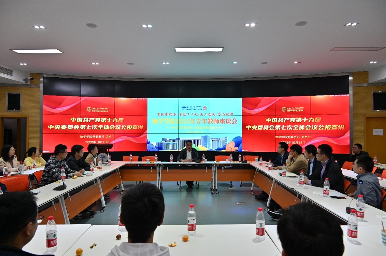 为迎接党的二十大胜利召开,深入贯彻学校第十五次党代会精神,增进地学学院教职工的认同感与归属感,凝聚奋进力量,建功新时代,10月13日下午,地学学院顺利举办GSEE地学匠心项目系列活动之青年教师座谈会,出席本次活动的有学院党委书记关秦川,执行院长刘国祥,党委副书记、副院长许军华,党委副书记和纪委书记傅尤刚,副院长张玉春、赵晓彦、朱军,院长助理曹云刚等党政领导,院工会主席蔡红波等学院工会委员,学院各科室主任,及各系青年教师。