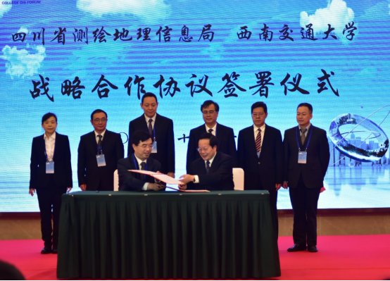 党委常委、副校长沈火明代表学校同四川省测绘地理信息局代表刘宇副局长签署战略合作协议。四川省测绘地理信息局局长党组书记杨宏山、李见阳处长、王芳处长,JVID