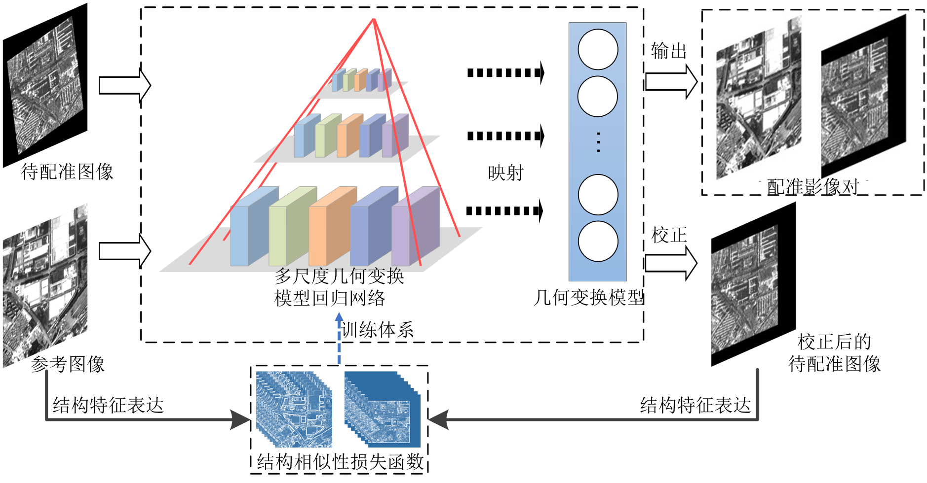2022年11月,接获高分辨率对地观测学术年会组委会通知,西南交大地学学院叶沅鑫老师及其研究生合作的论文“叶沅鑫,唐腾峰,朱柏,杨超. 一种无监督学习的多尺度遥感影像配准网络”荣获大会优秀论文奖。论文提出一种无监督学习的多尺度配准网络,在不需要真值标签的条件下,串联多尺度网络以构成“由粗至精”的配准流程,并设计基于结构相似性的网络损失函数,从待配准影像中映射出转换参数,有效克服了多模态遥感影像间的几何畸变和辐射差异,克服主流深度学习配准方法依赖于大量的标签样本的局限性,实现遥感影像的精确配准。