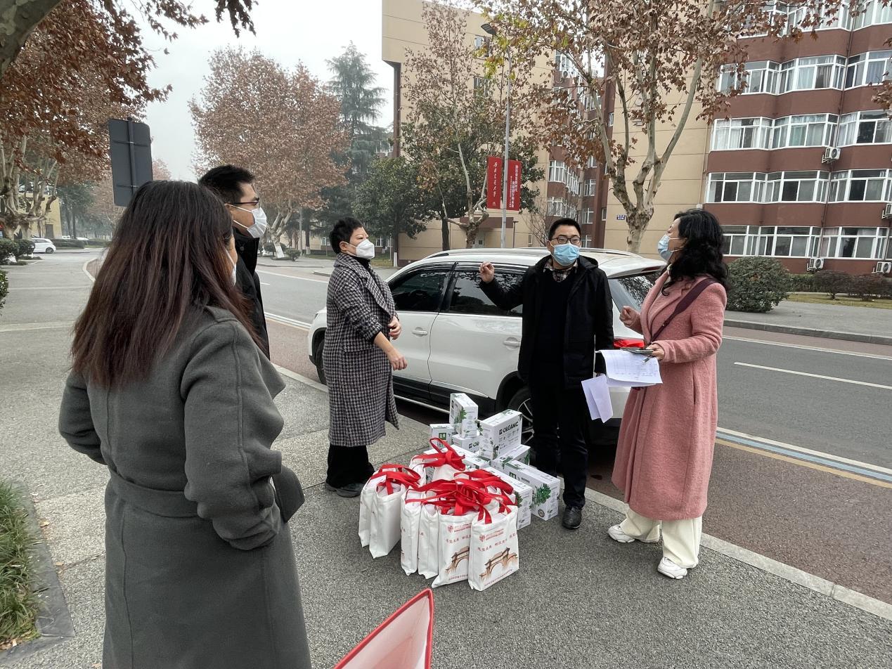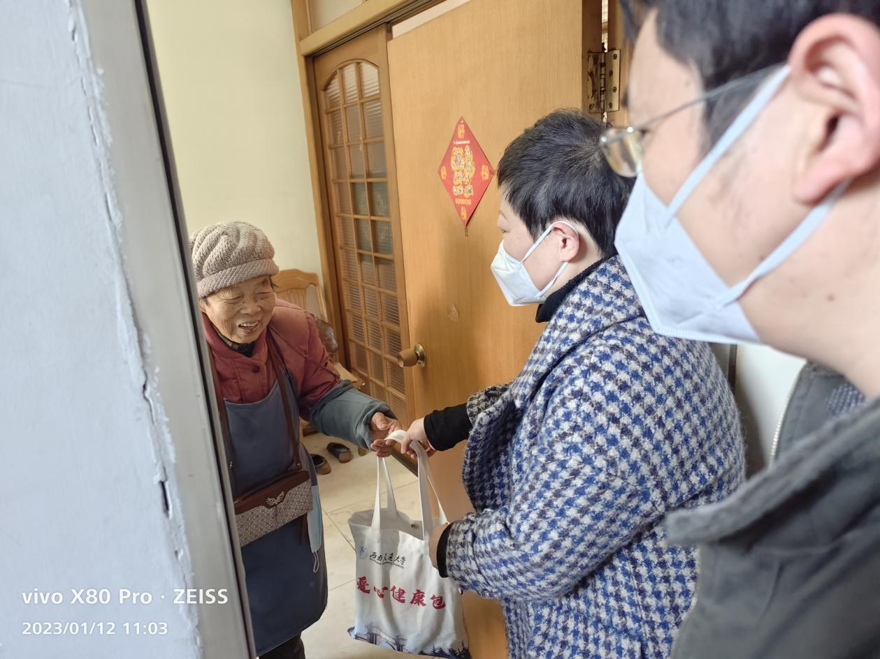 慰问的前一天各系秘书先给老同志们打去了关心的电话,拉家常询问健康的同时,也了解清楚老同志们目前的居住地址。1月12日上午,慰问小组成员早早地就来到了学校居住区,为了老同志们的身体着想,减少聚集,由慰问小组登门为老同志送去祝福;对于部分不方便的老同志采取“零接触”式送祝福到门口,然后通过电话表达学院对老同志的关心关爱。
