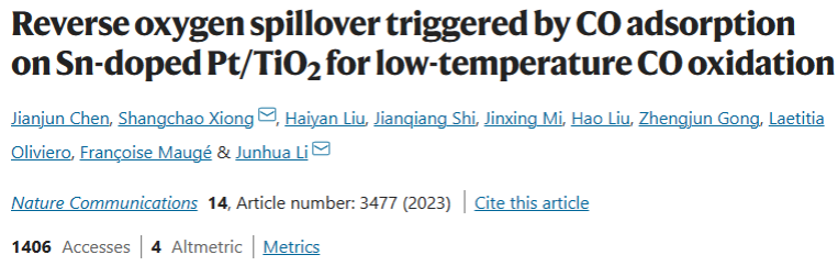 近日,地学学院环境污染控制化学团队与清华大学李俊华教授团队合作,在Nature Communications上发表题为“Reverse Oxygen Spillover Triggered by CO Adsorption on Sn-doped Pt/TiO2 for Low-Temperature CO Oxidation”的高水平学术论文。Nature Communications是Nature出版集团旗下的一本综合性自然科学期刊,致力于发表高质量、原创性自然科学研究成果,涵盖了物理、化学、生物学、环境科学、材料科学、地球科学等领域。Nature Communications的2021-2022年影响因子为17.694。论文主要作者有:陈建军(清华大学,第一作者)、熊尚超(JVID