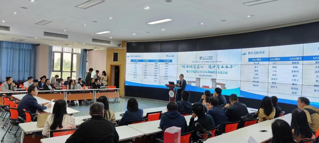 第十一届青年教师教学竞赛地学学院分赛场“传承地学匠心·提升育人水平”决赛于犀浦校区X4243圆满举行。此次活动共分决赛开幕式、教学竞赛及闭幕式三个环节。出席本次活动的人员有:校工会主席靳能法、教师工作部副部长李箐、教务处副处长季敬皓、教师工作部科长梁慧颖,地学学院党委书记关秦川、院长刘国祥、副书记郑波、副院长张玉春、副院长朱军及竞赛评委、参赛教师、各系(科室)主任、院机关工作人员。本次活动由地学学院副院长张玉春主持。
