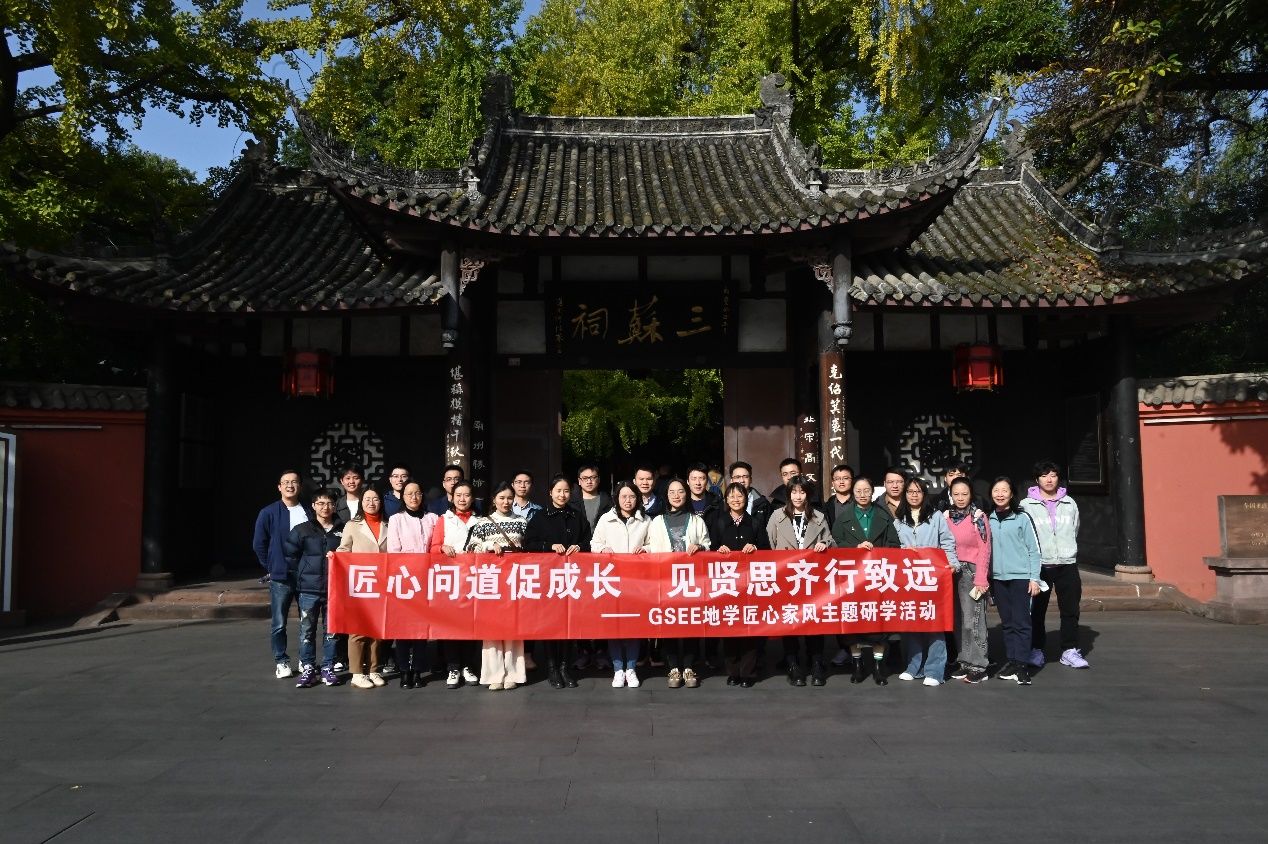 2023年11月16日,地学学院30余名青年教职工在学院党委和学院工会的组织下,追寻习近平总书记2022年6月8日考察眉山三苏祠的足迹,到三苏祠开展了“匠心问道促成长,见贤思齐行致远”GSEE地学匠心家风主题研学活动,深切领会习近平总书记关于家风传承的重要指示,亲身感受中华文化的博大精深。