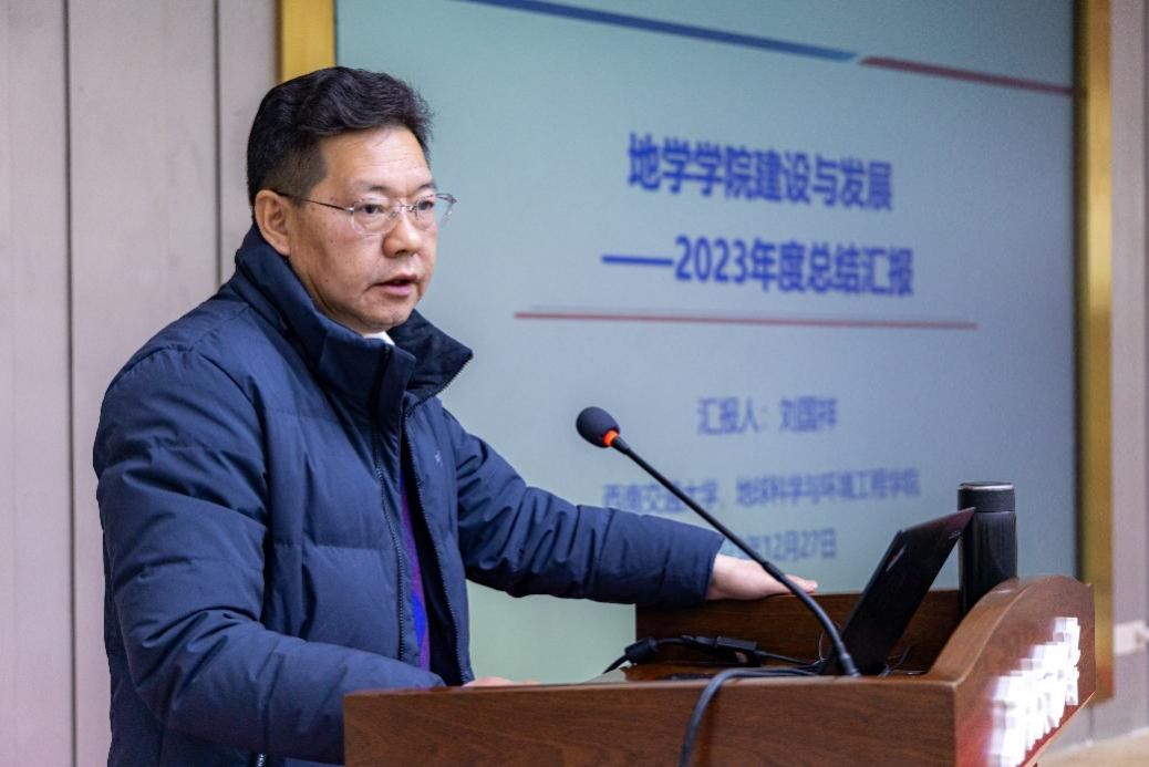 与发展思路、学院建设与发展主要举措、学科专业建设新成效、存在的挑战与今后的重点工作等多个方面,向退休教师通报了学院2023年建设与发展情况。刘院长指出,学院的国家级人才、外籍专家、省部级人才队伍不断壮大,获批的国家自然科学基金项目数稳步增长,获批的其他国家级、省部级项目或课题逐渐增多,发表SCI/SSCI论文数量和质量显著提升,学生在“挑战杯”全国大学生课外学术科技作品竞赛等创新实践竞赛中取得新突破。他表示,地学学院发展到今天,离不开老同志们做出的巨大贡献,吃水不忘挖井人,学院要继承尊师重教的优良传统,爱老、敬老、护老,直面挑战、砥砺前行,传好手中的接力棒;以问题为导向,继续全面实施人才强院战略、国际化战略,加速推进教育教学改革与科学研究创新,为实现地学学科专业高质量发展而努力奋斗,为国家铁路建设和发展贡献交大地学力量与智慧!