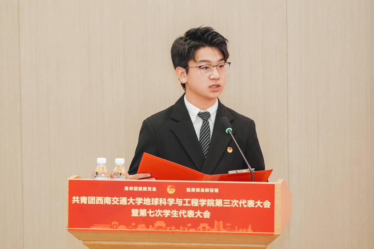 第三次代表大会暨第七次学生代表大会在犀浦校区图书馆二号报告厅隆重召开。校团委书记武俊,地学学院党委书记关秦川、党委副书记郑波,各兄弟学院团委相关负责同志,及地学学院师生代表出席了大会开幕式。大会由地学学院团委书记杨都强主持。