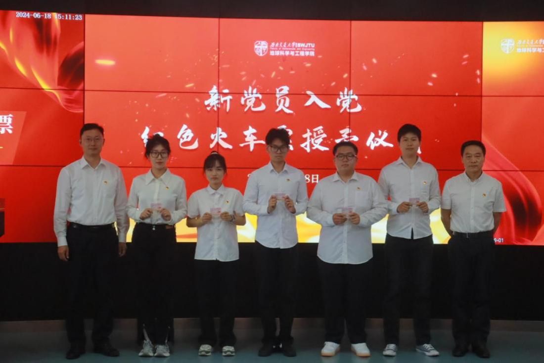 2023-2024学年,地学学院党委共发展了128名中共党员,为党的事业发展注入了“新鲜血液”,让党的事业薪火相传。学院党委为每一位新入党的同志定制了一张红色火车票,寓意着从党支部接收为预备党员开始,大家便乘上了一辆通往共产主义的列车,列车的发车时间即为各位同志的入党时间。庆祝活动第二项,由关秦川同志、郑波同志为新入党同志代表授予红色火车票。