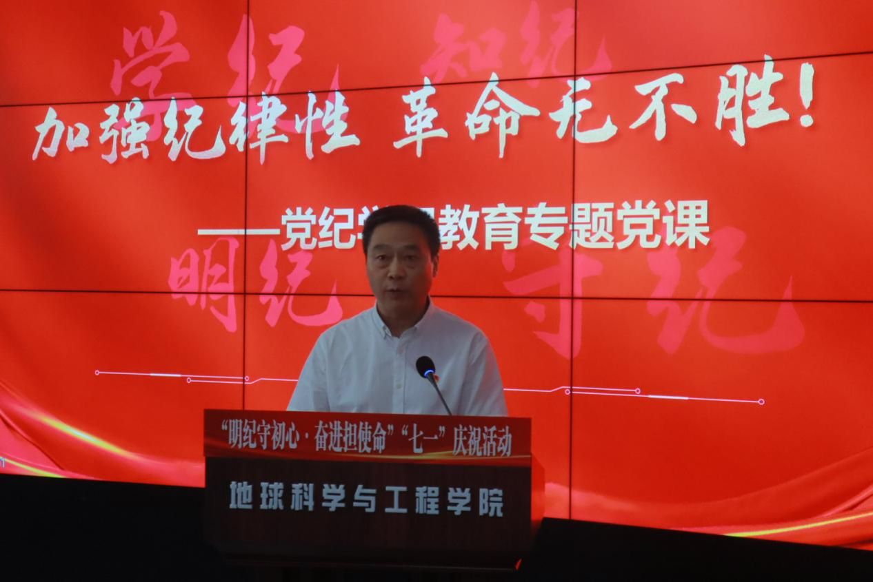 第四教学楼顺利举行。活动中,地学学院党委书记关秦川同志讲授党纪学习教育专题党课。