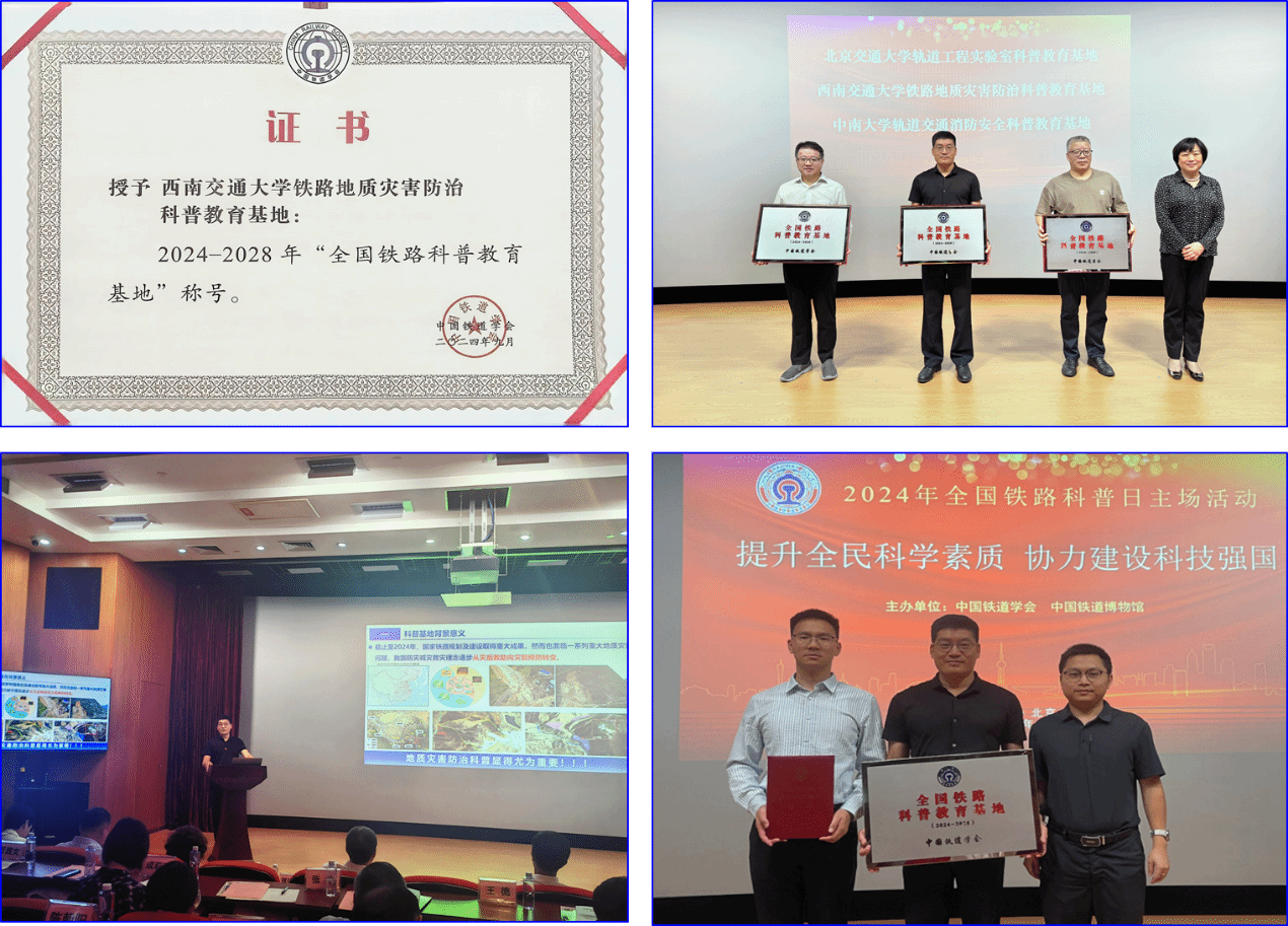 铁路地质灾害防治科普教育基地入选2024—2028年“全国铁路科普教育基地”,学校赵晓彦教授作为唯一一家高校科普教育基地代表分享了科普经验。