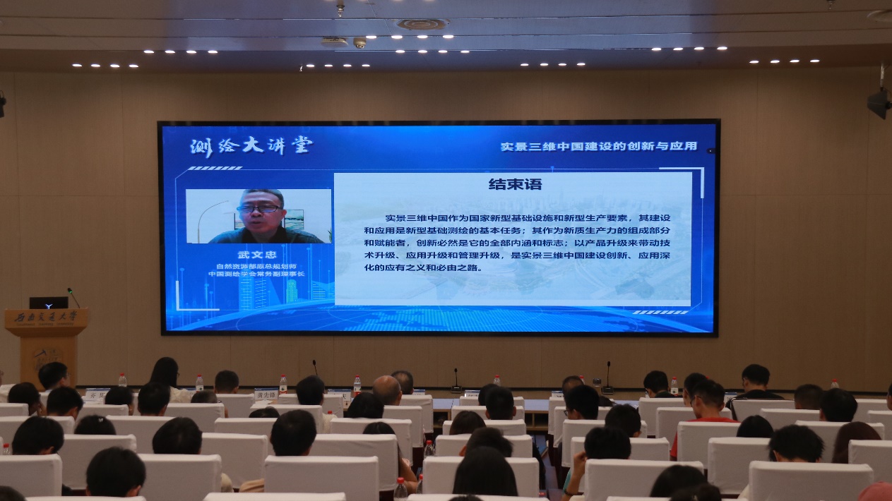 于犀浦校区图书馆二号报告厅举办“测绘大讲堂”。本次活动围绕“实景三维中国建设的创新与应用”主题展开,由JVID