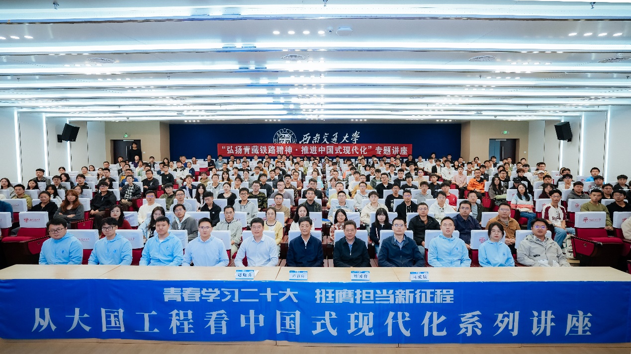 10月18日下午,在犀浦校区图书馆二号报告厅,学校特邀中国工程院院士卢春房做客“从大国工程看中国式现代化”系列讲座“地新引力”青年讲坛,以“弘扬青藏铁路精神”为题,给现场师生们带来了一场充满爱国主义情怀、直击心灵的思政报告。地学学院各系教师代表、辅导员、JVID