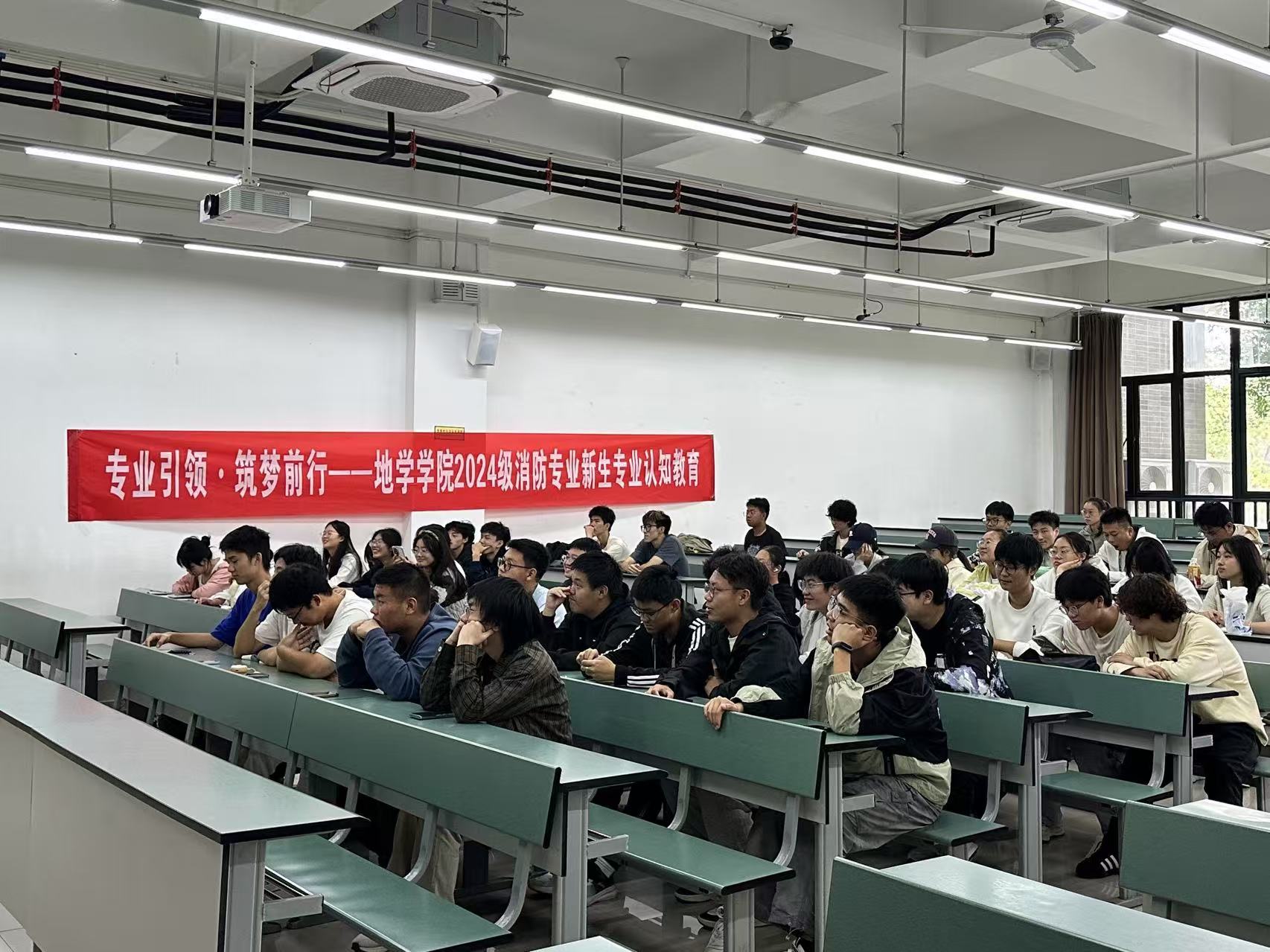 在X4153成功举办了消防工程专业认知教育大会。本次大会由地学学院2024级本科辅导员姜茜主持,消防工程教师李涛主讲,2024级全体消防工程专业新生参加活动。