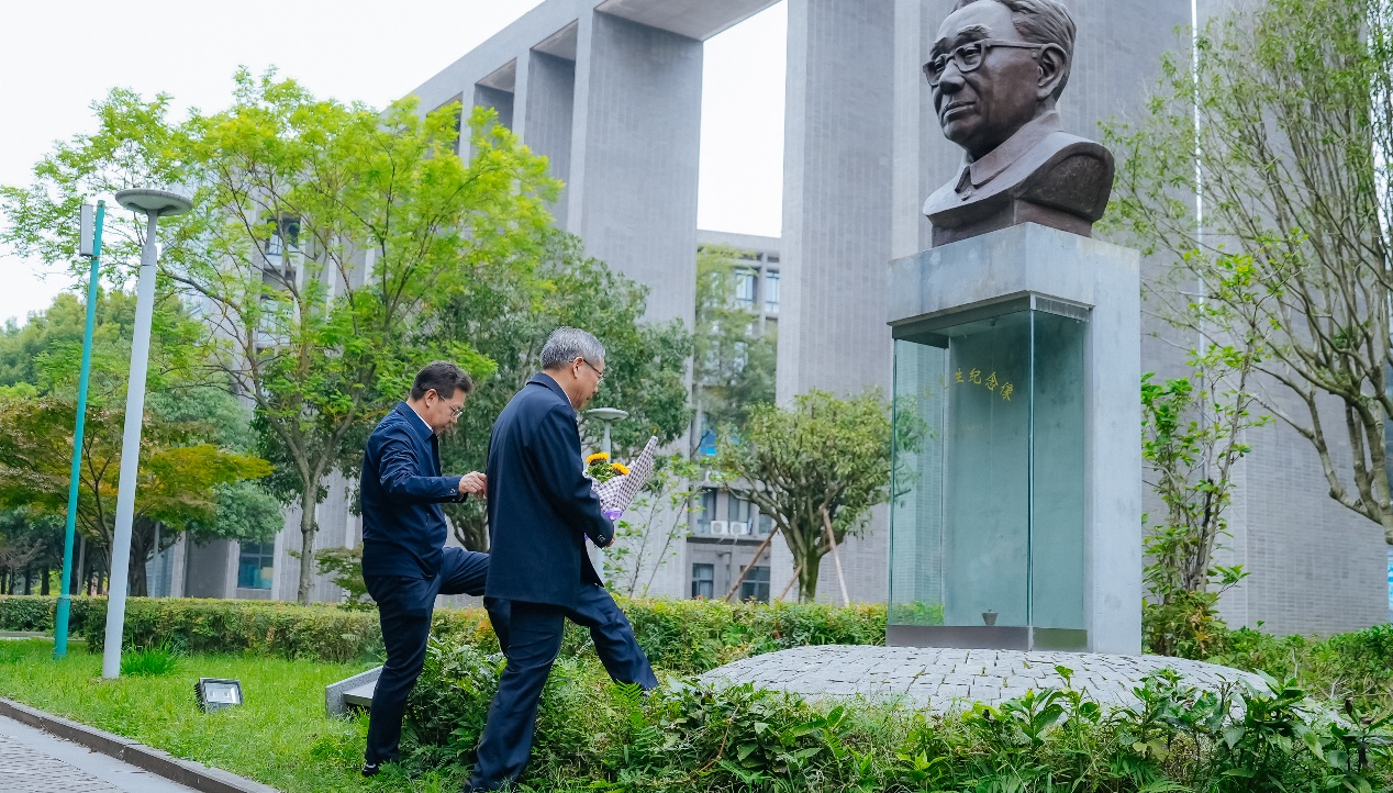 报告会后,孙和平院士一行前往方俊院士的铜像处敬献鲜花,致以深切的缅怀。