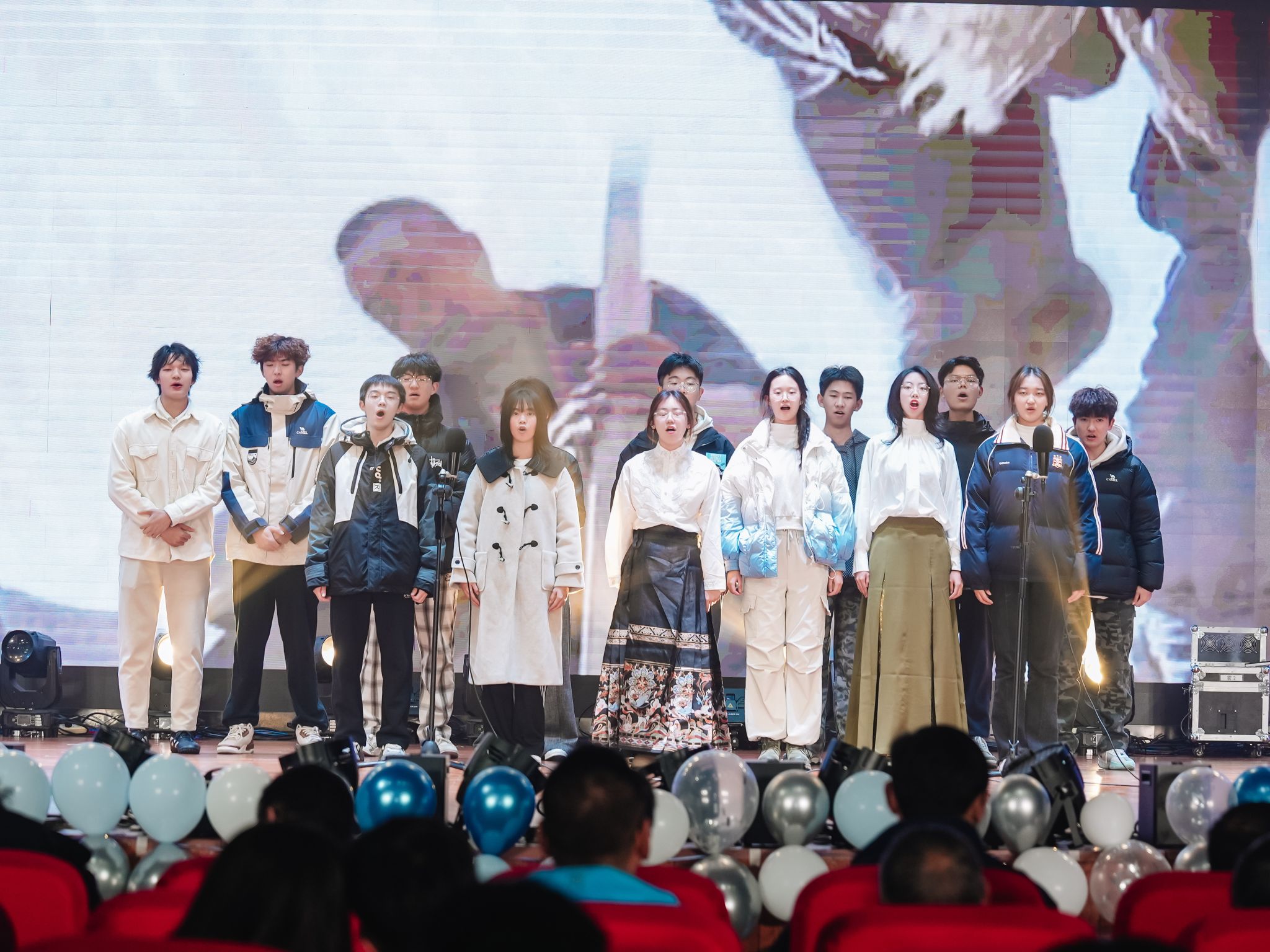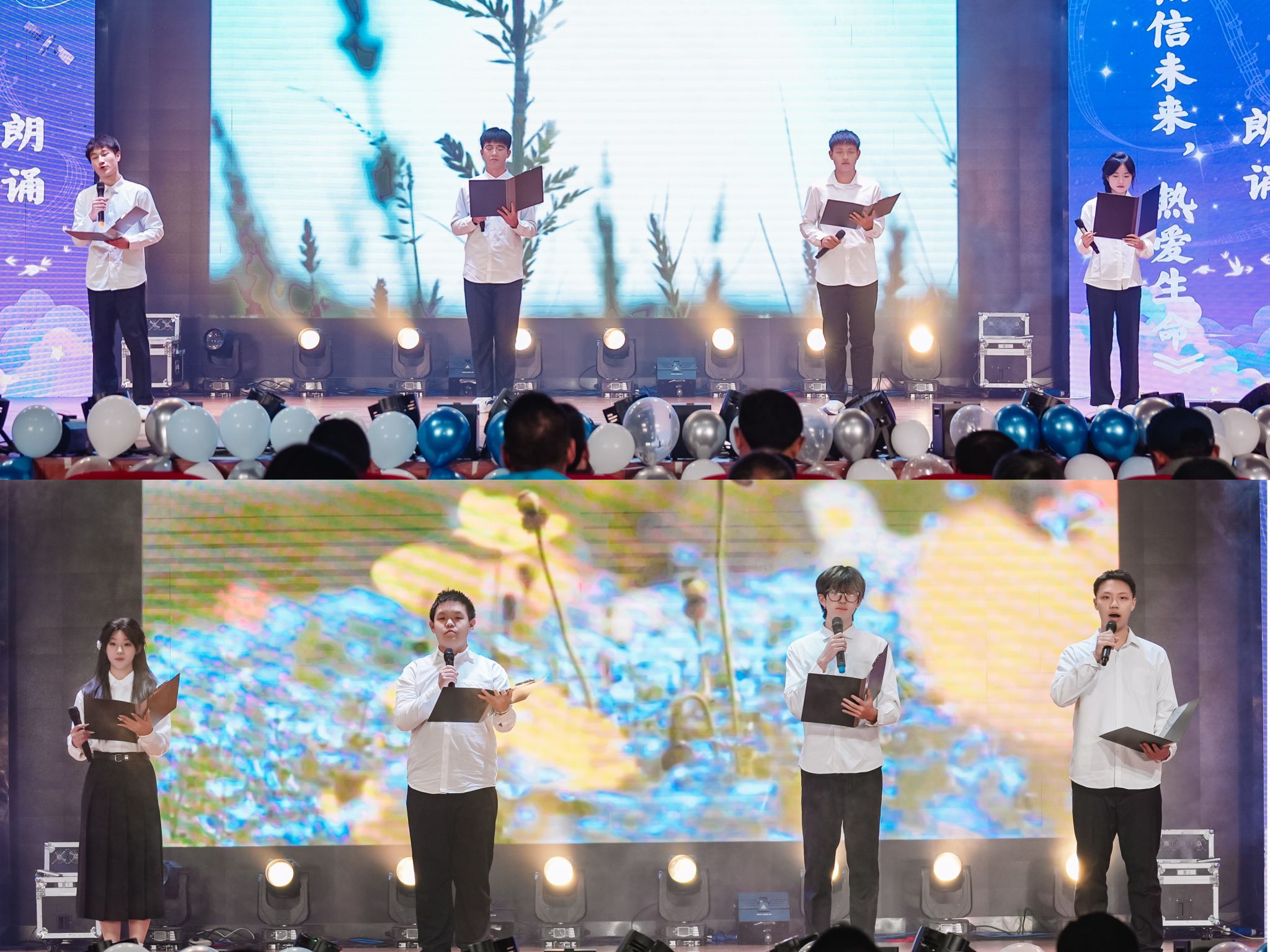 由地学青协、班联以及测绘2班带来的合唱《夜空中最亮的星》宛如璀璨星群在夜幕下共鸣,交织着希望与力量的歌声里有对梦想的执着与冲破黑暗的勇毅,动人心弦。