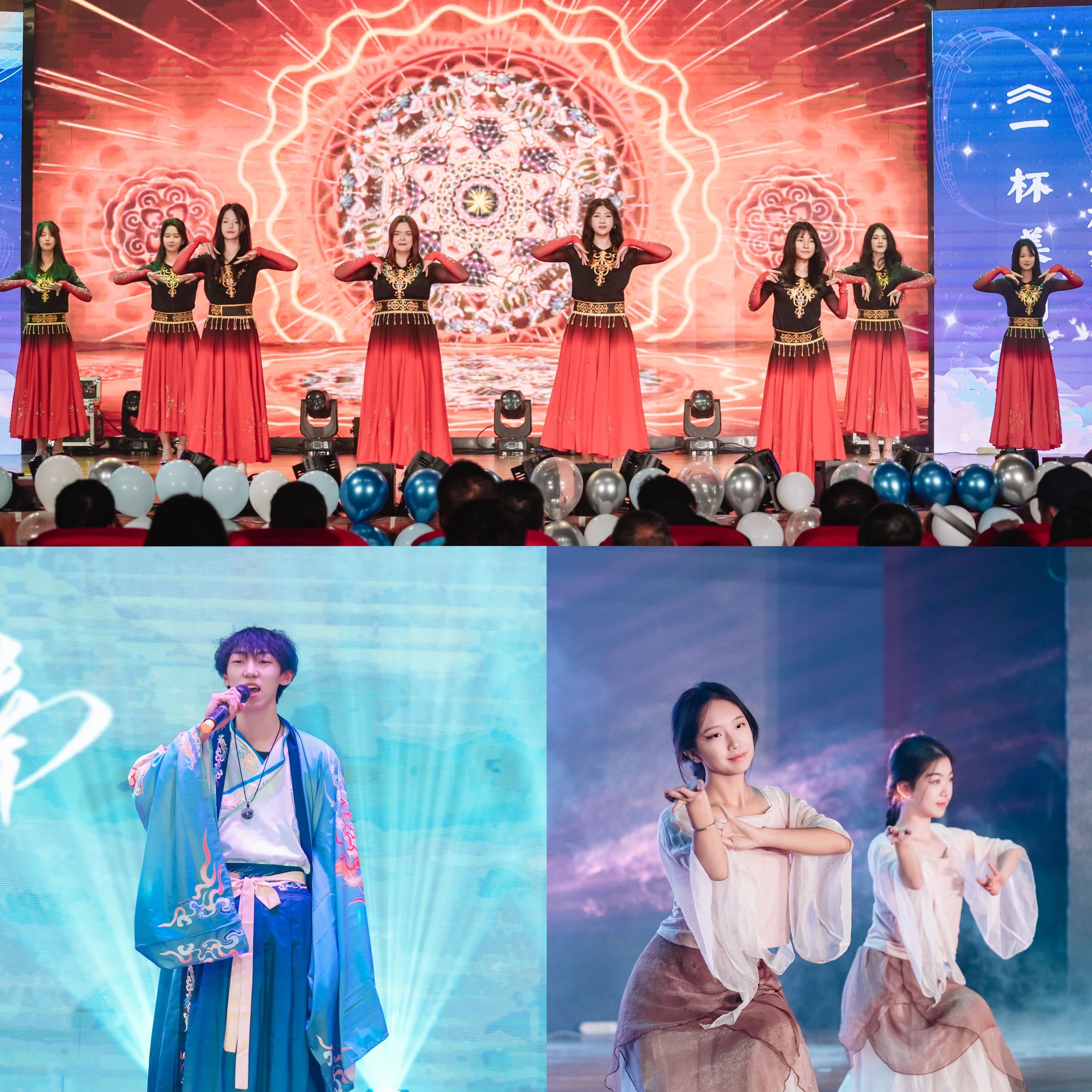 《一杯美酒》民族舞蹈作为开篇,舞者以灵动身姿、热情舞步,借美酒之意,传递炽热情感,尽显独特魅力,令人陶醉。古风舞《放灯行》宛如诗意画卷,舞者衣袂飘飘,舞步轻盈似仙,举手投足间演绎出放灯古韵,伴着儒雅的歌声,蕴含深情,尽显古风雅韵之美。