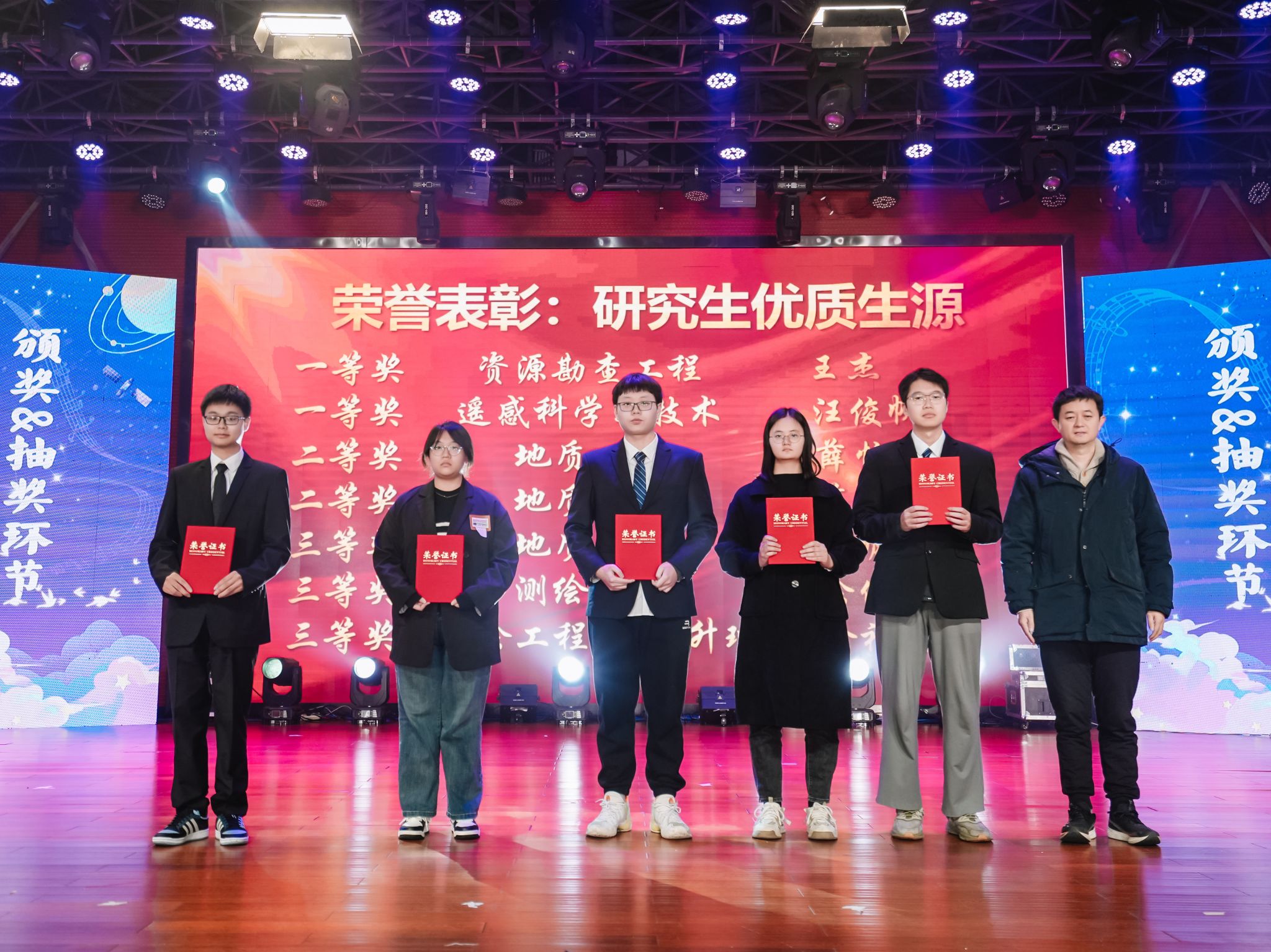 在第一篇章尾声,朱军副院长颁发了地学学院研究生优质生源奖,鼓励更多的优秀学子在交大继续深造、不断奋进。颁奖环节之后,便迎来了令人激动的第一次抽奖,朱军相继抽取三等奖幸运观众,推动现场气氛走向火热。