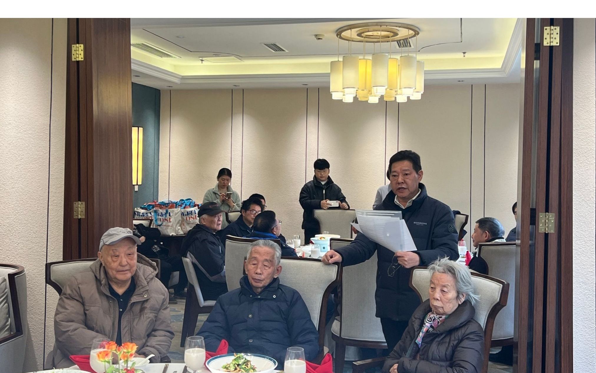 接下来,大家一起共进午餐并进行了热烈的交流座谈,座谈会结束后,学院领导为离退休老师们送上了精心准备的新年祝福礼物,