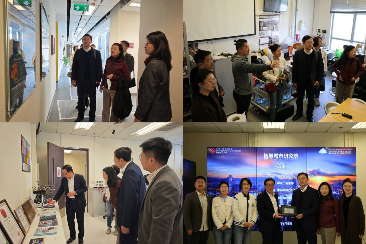 随后,代表团一行参观了学系实验室、教师工作间,进一步了解了香港理工大学实验室建设、管理、设备等情况,以及“产学研用”系统合作及育人环境营造情况。期间,代表团与国际欧亚科学院院士、香港理工大学潘乐陶慈善基金智慧城市研究院院长史文中进行交流并互赠纪念品。