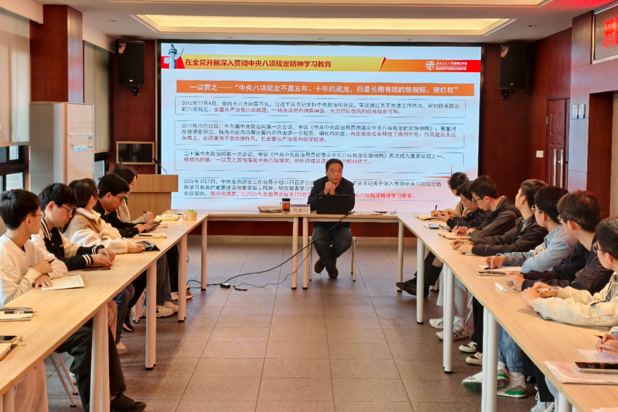 最后,关书记传达布置了校党委及学院党委关于深入贯彻中央八项规定精神学习教育的工作安排,要求各党支部要从学习研讨、查摆问题、集中整治、开门教育等方面认真落实相应的工作清单。尤其要紧密结合2024年学院党委在巡察整改中的重点工作,在学中知敬畏、在查中找差距、在改中见实效,一体推进学查改,确保学有质量、查有力度、改有成效。