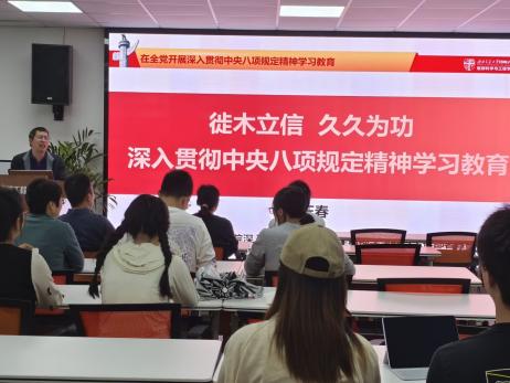 为深入贯彻中央八项规定精神学习教育,提高党员理论素质与党性修养,4月24日地学学院党委委员、副院长张玉春同志在馆外实验楼C204为教工消防党支部、本科安全党支部、本科消防党支部讲授“徙木立信 久久为功 深入贯彻中央八项规定精神学习教育”专题党课。