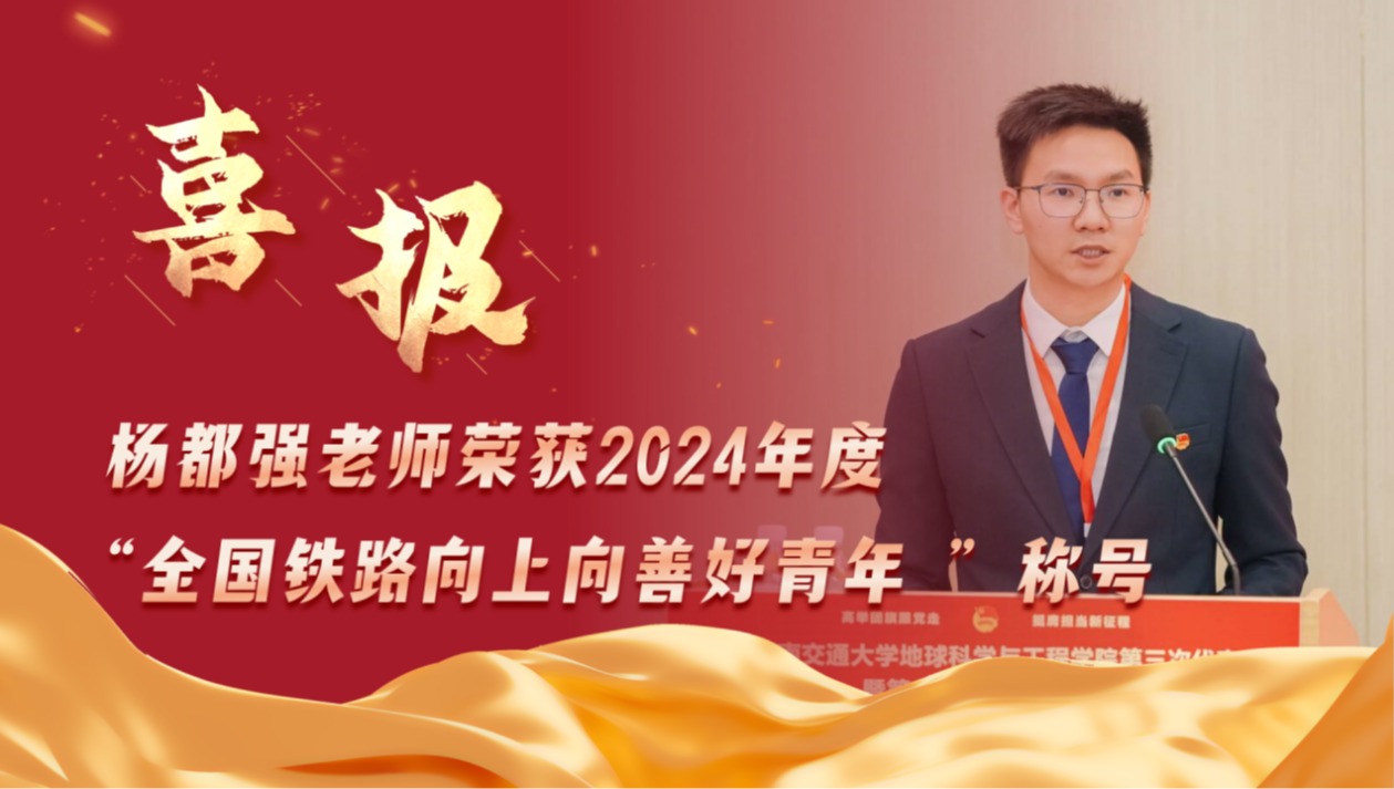 近日,全国铁道团委公布2024年度“双创立功”竞赛表彰名单及铁路行业“两红两优”表彰名单。地学学院团委书记杨都强老师荣获“全国铁路向上向善好青年”称号!