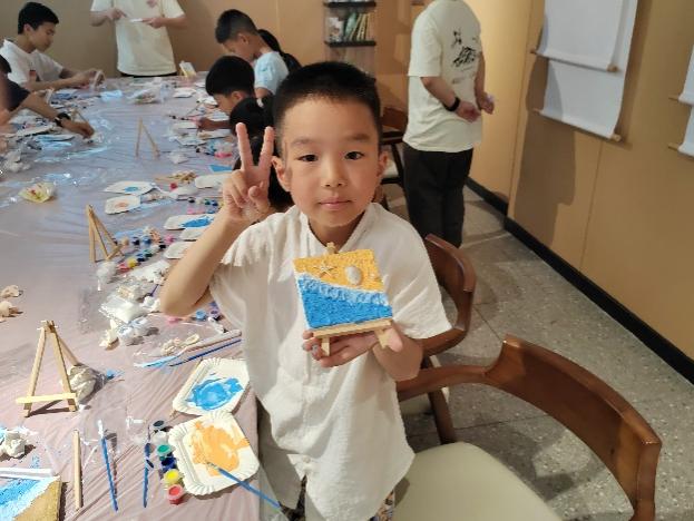 在创意手工环节,香港理工大学学生和地学学院志愿者与社区儿童结对合作,共同完成扎染和贝壳画作品。孩子们天马行空的创意与志愿者耐心的指导相映成趣。一幅幅色彩斑斓的作品不仅展现了童真,更凝聚了两地青年的协作精神。香港理工大学的陈同学感慨道:“孩子们教会我用更简单的视角看世界,这种双向的成长令人难忘。”