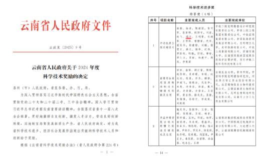 近日,《云南省人民政府关于2024年度科学技术奖励的决定》正式颁发,JVID